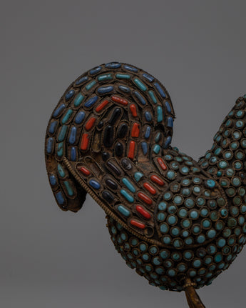 This Copper Rooster, with its intricate design and the vibrant colors created by the artificial stones, is an amazing addition to any area. This work of fine art, which combines traditional workmanship with modern aesthetics, is ideal for collectors and enthusiasts. This stunning Copper Rooster will add a touch of timeless charm and exquisite workmanship to your decor.