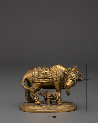 This Cow Sculpture for Decor elegantly reflects the cow's sacred and maternal character, which is regarded in many spiritual traditions as a sign of abundance, motherhood, and divine grace. This handcrafted brass cow figurine stands 6cm tall, 8cm wide, and weighs 0.31kg. It exemplifies ageless craftsmanship and cultural commitment. The brass body has a golden brilliance that lends warmth and peace to any environment, making it an ideal addition to your home altar, meditation room, or living room decor.