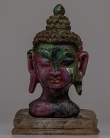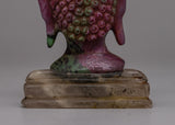 Experience the calm presence of this handcrafted crystal Buddha head statue, which is exquisitely positioned on a crystal stand and has a body composed of zoisite and ruby. This figurine, which stands 10 cm tall, combines the ageless teachings of the Buddha with the organic beauty of priceless gemstones.