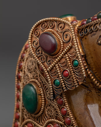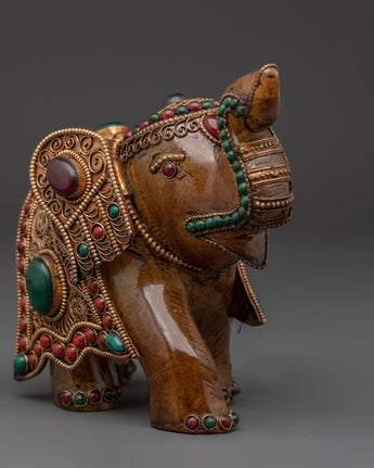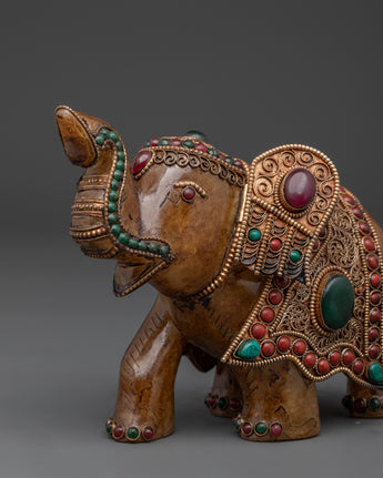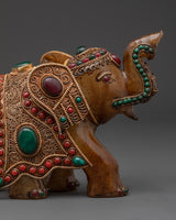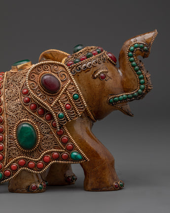 This statue, crafted with great attention to detail, weighs 1.30 kg and blends the strength of crystal with the brilliant splendor of imitation stones such as red coral and turquoise. These materials are carefully picked not just for their aesthetic value, but also for their spiritual virtues—coral represents riches, while turquoise is known for its protective properties. The excellent copper and silver-plated finish provides a sumptuous touch, guaranteeing that the statue serves as both a spiritual emblem and an exquisite ornamental object. This Crystal Elephant Statue is ideal as a thoughtful gift for loved ones or as a personal symbol of good fortune. It exudes elegance and purpose.