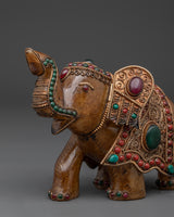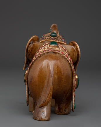 Exquisite Spiritual Crystal Elephant Statue with Copper & Silver Accents
