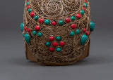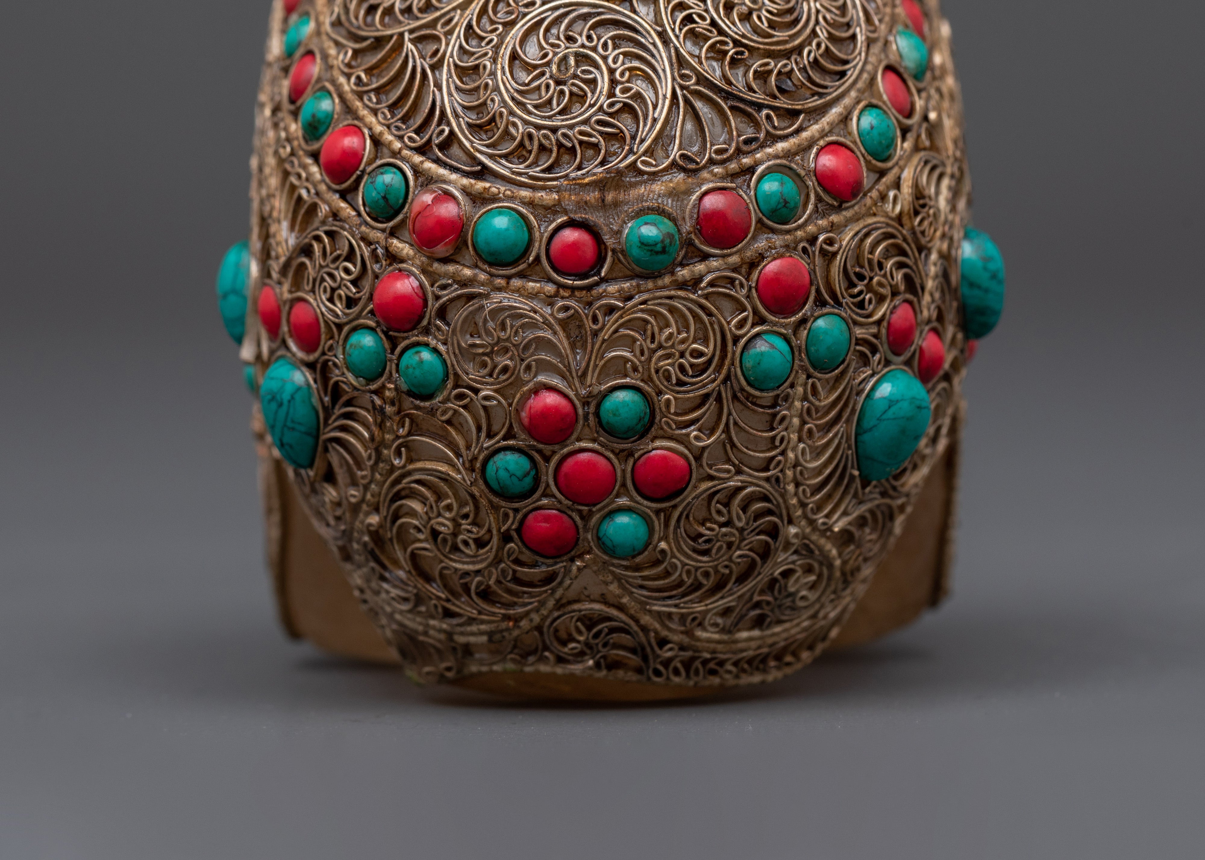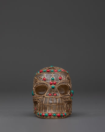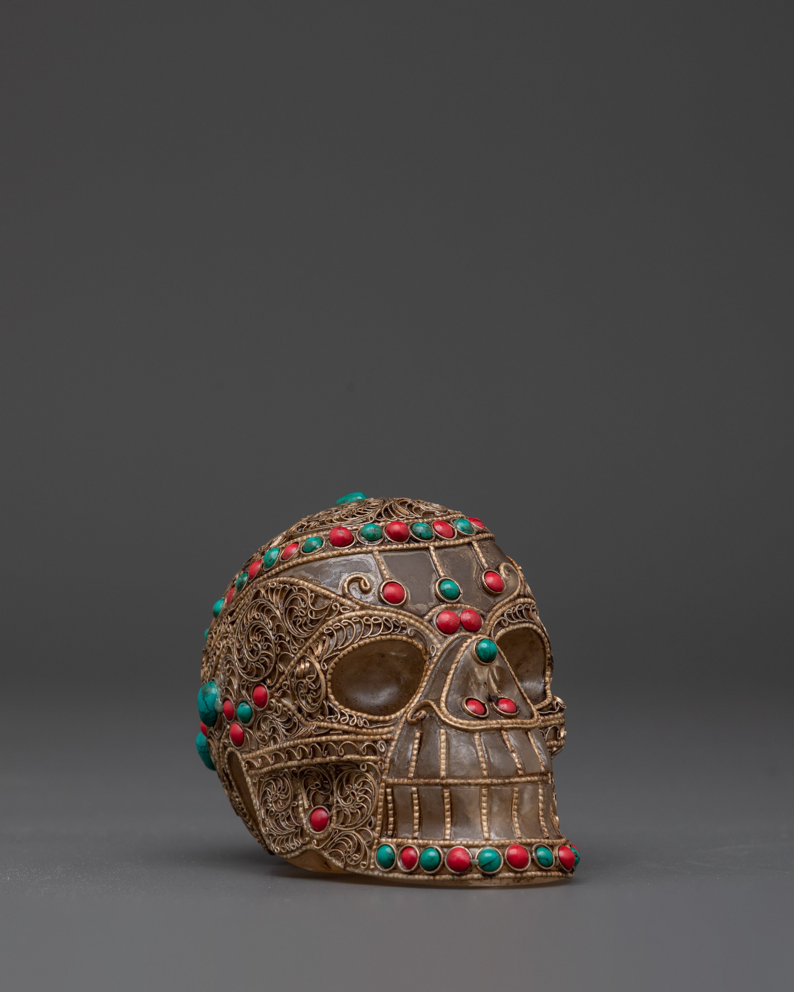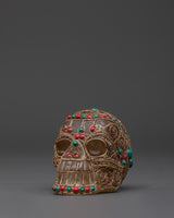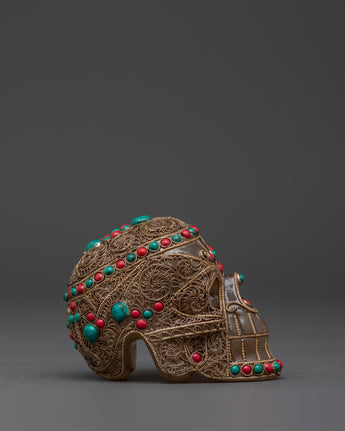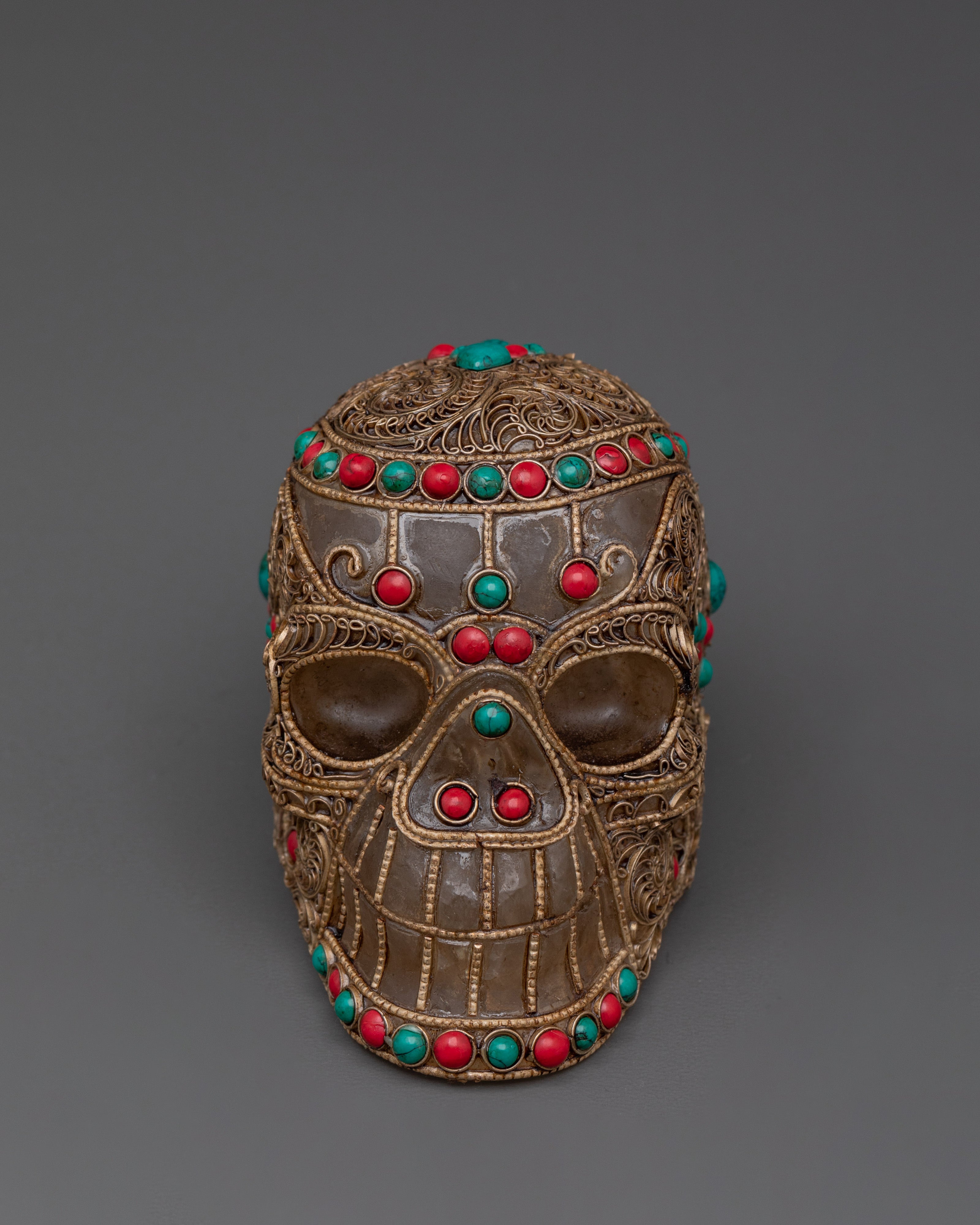 Handcrafted Crystal Skull with Coral and Turquoise Stones