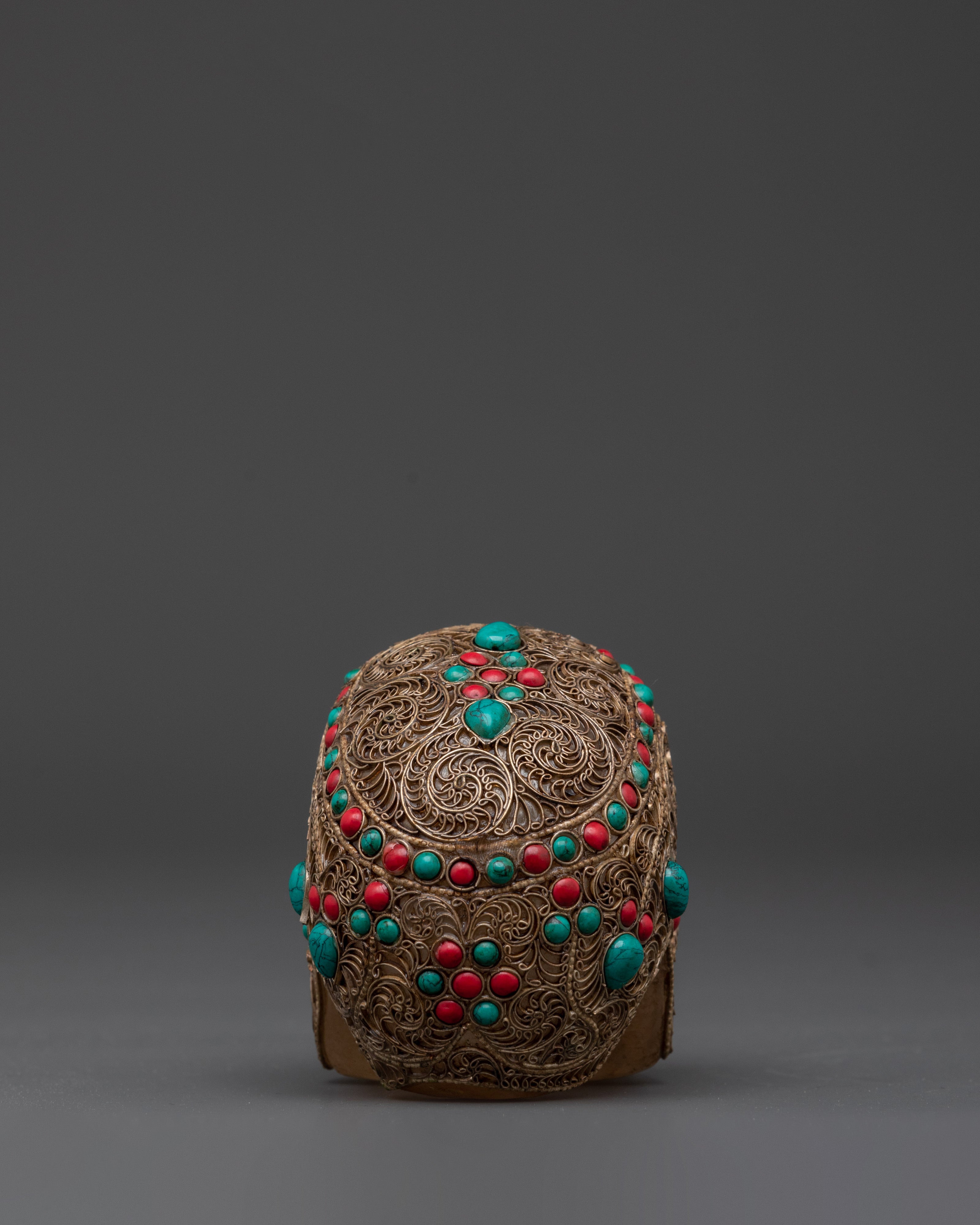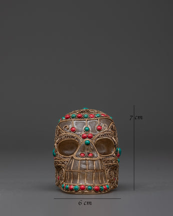 The Crystal Handmade Skull for Decor is a unique and striking piece, combining artistry, symbolism, and spiritual significance. Standing at 7 cm in height and 6 cm in width, with a side width of 10 cm and a weight of 0.54 kg, this skull is crafted from high-quality crystal and adorned with vibrant coral and turquoise artificial stones. The detailed design and intricate embellishments make this piece not only a beautiful decorative object but also a meaningful symbol of protection, transformation, and the balance between life and death in various spiritual traditions.