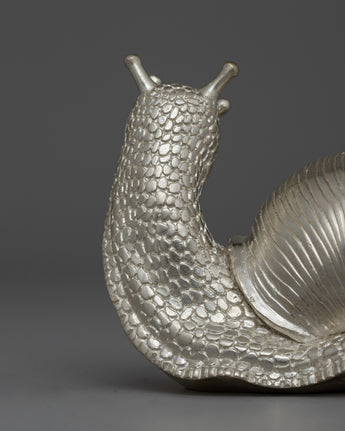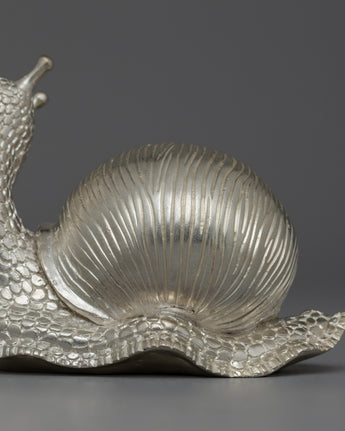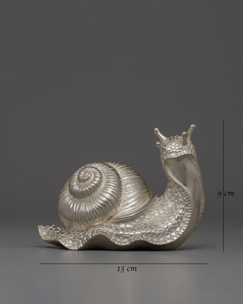 The snail's body stands out as a decorative and symbolic object due to its coarse, scale-like structure, which gives depth to the entire design. Raising its head to reveal inquiring antennae, the figure appears to be moving carefully, signifying the gentle yet strong progression of life. This item, which has a base diameter of 13 cm and a height of 9 cm, weighs 0.53 kg and is perfect for adding an elegant finish to any surface, including coffee tables and shelves. Beyond its use as a decorative element, the Decorative Silver Snail is a symbol of peace, tolerance, and endurance that combines the artistic expression of nature with human ingenuity. Ideal for individuals wishing to add a distinctive accent to their interior design or collection, it exudes sophistication with its
