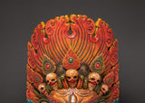 This mask is not just a work of art, but also a mystical talisman designed to repel negativity and attract good energy. The flaming reds, oranges, and earthy tones, along with symbolic symbols, make a stunning visual effect that adds warmth and mystique to your space. This Bhairav mask, whether used as a focal point in your meditation space or as an artistic statement in your house, exudes powerful spiritual force and ancient knowledge.
