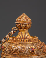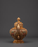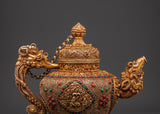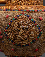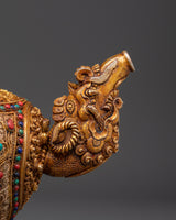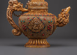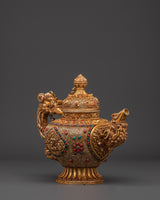 This exquisite handcrafted decorative tea pot showcases masterful artistry, blending intricate copperwork with silver and gold plating. Adorned with vibrant artificial stones like coral and turquoise, it adds a rich splash of color and elegance to any setting. Perfect as a standout piece in your home decor or a treasured addition to your collectible collection, this teapot brings both beauty and sophistication. Its unique design and fine detailing make it an ideal gift for those who appreciate refined craftsmanship and style.