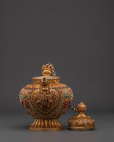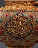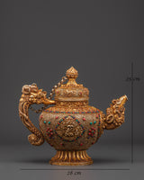 This Decorative Tea Pot exemplifies traditional craftsmanship, meticulously crafted with attention to every detail. The elegant silver and gold plating adds a sophisticated and refined finish. The incorporation of coral and turquoise stones enhances its visual appeal and imbues the piece with cultural significance, making it a meaningful addition to any collection. Ideal for tea enthusiasts, collectors, or as a distinctive gift, this tea pot combines artistry with functional beauty, elevating any space with its unique charm and heritage.