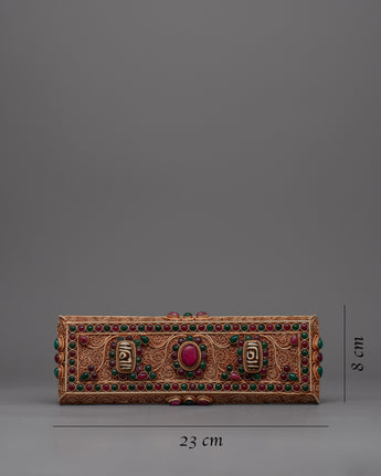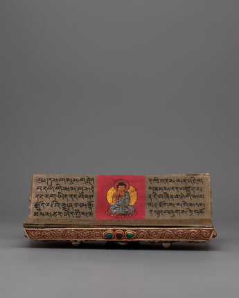 Decorative Tibetan Prayer Book | Elegant Spiritual Text with Copper and Gem Inlays