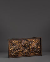 This Dragon Motif Wall Art, meticulously produced by expert artisans, exemplifies Tibetan spirituality and artistry. Dragons are frequently seen as symbols of strength, wisdom, and protection. Thus, this wall painting is not only visually appealing but also culturally significant. The combination of brass and iron lends it a classic quality, while the exquisite design exemplifies the elegance of traditional craftsmanship. This wall hanging is more than just a decoration; it sparks conversation and inspires admiration for its beauty and spiritual depth.