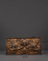 This magnificent Dragon Motif Wall Art is the ideal combination of traditional Tibetan craftsmanship and creative beauty. This handcrafted sculpture, featuring exquisite dragon motifs, is intended to enrich any area by infusing it with spiritual vitality and cultural richness. With a height of 21.5 cm and a width of 42 cm, it conveys the majestic presence of a dragon into your house. Its intricate brass body and iron elements make it a decorative piece suitable for both modern and classic settings. Whether you want to add style to your home or create a unique meditation room, this sculpture is sure to make an impression.
