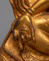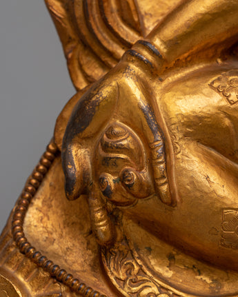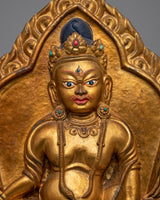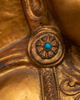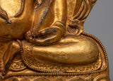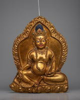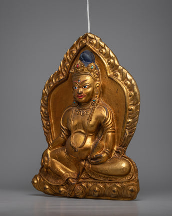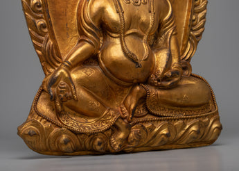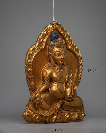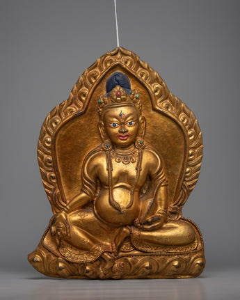 The Buddhist Sculpture of Kubera portrays the lord of wealth and the savior of the north. The blessing of Dzambala and the value of his practice are universal. It assists us in minimizing or reducing all misfortunes and obstacles and growing all good fortune and happiness. Kubera's mission from the gods in Hinduism was to make worshippers wealthy. This gold-gilded Dzambhala statue is excellent for Vajrayana practice.
