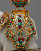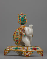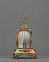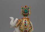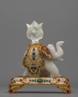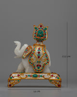 The elephant statue, adorned with artificial stones such as panna and ruby, displays vivid hues that denote plenty and clarity. While panna stones stand for intelligence and knowledge, rubies are frequently connected to ardor and vigor. The exquisite inlay work exhibits remarkable artistry, transforming this piece from a decorative accent to a potent representation of good fortune and protection.