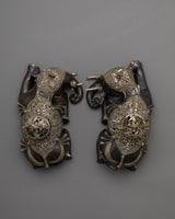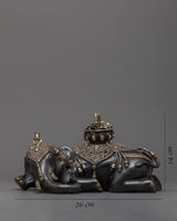 Our exquisite Handcrafted Elephant Statue set, a magnificent work of art that will captivate your senses, is now available. Each statue is painstakingly crafted on a copper base to represent strength and durability. The intricate details on the elephants demonstrate our artisans' skilled craftsmanship. The set is adorned with silver plating to add a touch of opulence and sophistication to its elegance. These magnificent elephants stand tall, representing power, wisdom, and fortune. This Handcrafted Elephant Statue set is sure to elevate any space with its beauty and charm, making it ideal as a decorative centerpiece or thoughtful gift.