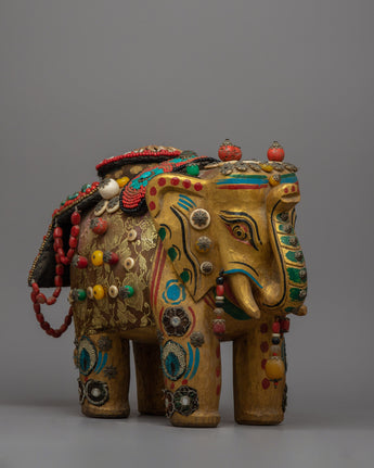 Elephant Wood Statue | Artisanal Sculpture Symbolizing Wisdom and Strength