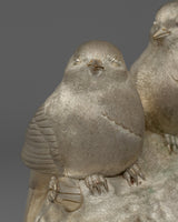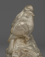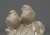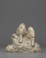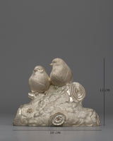 This stunning masterpiece of bird statues exhibits the craftsmanship and elegance of premium design. The sculpture is handcrafted from high-quality copper and plated with a beautiful layer of electro-silver, exuding enhancement and timeless elegance. The delicate craftsmanship brings the two birds to life, sitting gracefully on a textured landscape, generating a peaceful and positive attitude. Every feather, curve, and contour of the birds has been delicately carved, communicating the essence of nature with an advanced, exquisite elegance.