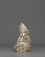 Standing 13 cm tall and 16 cm wide, this beautifully crafted sculpture has an ideal combination of proportions, making it a stunning centerpiece for any environment. The statue's base, resembles a natural composed of rocks formation, is adorned with delicate features such as a chopped tree log and a finely etched wheel, which add to the scene's realism. The rough surfaces look stunning against the smooth, polished silver plating, creating depth and character to the piece. The sculpture's weight of 0.93 kg indicates its sturdy construction and excellent materials, which ensure endurance and grandeur.