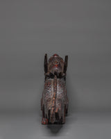 The statue, expertly carved from wood, depicts the mythical monster with precise scales, expressive facial features, and a dynamic posture. The artisan artistry recalls millennia of Himalayan and Asian culture, in which dragons are revered as protectors of wealth, prosperity, and cosmic equilibrium. Its extended design and delicately etched textures add to its attractiveness, making it a prized collectible for both art fans and spiritual practitioners.