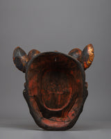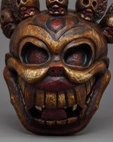 Fierce Face Mask With Skull Wall Hanging | Unique Handcrafted Buddhist Artwork