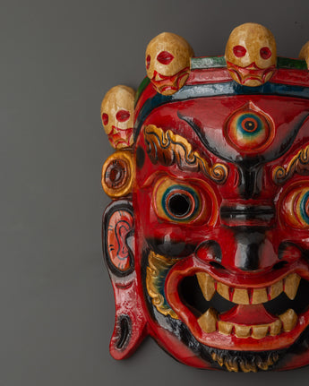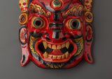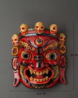 Fierce Mahakala Wall Mask |Handcrafted Wrathful Spirit Mask with Skull Crown