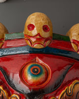 This mask represents protection, strength, and transformation with its vibrant colors and elaborate details, such as the recognizable five-skull crown and piercing eyes. It is ideal for display on altars, meditation rooms, or other places of worship, as it serves as both a spiritual protector and a stunning work of beauty. With this genuine Tibetan wall mask, you can welcome strong protective energy into your surroundings and embrace the fierce compassion of Mahakala.