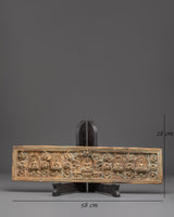 This Five Dhyani Buddha Figure Decor is made of copper and finished with beautiful gold plating, representing beauty and spiritual significance. This amazing artwork, measuring 28cm in height and 58cm in width, weighs 3.48kg, and is intended to serve as a spiritual focal point in your house, shrine, or meditation place. Its exceptional material quality and meticulous finish highlight the craftsmanship of traditional Himalayan craftspeople.