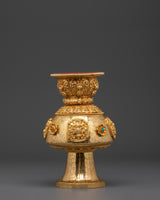 Invite sacred blessings into your space with this Gold Plated Copper Flower Vase for Ritual Offering. A blend of artistry and symbolism, it makes a powerful addition to Buddhist practice, puja rituals, and spiritual altar decor.