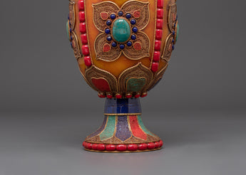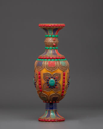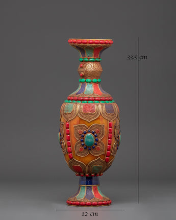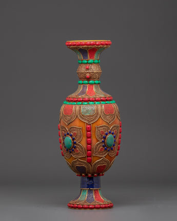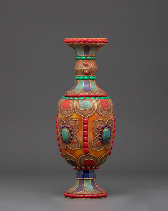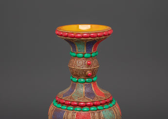 Beyond its visual appeal, this vase set represents the spiritual core of Himalayan culture. Natural stones, such as coral and turquoise, are believed to provide positive energy and protection. Handcrafted by expert artisans, these vases not only honor old skills but also add a significant, symbolic touch to your home decor.