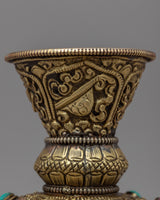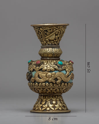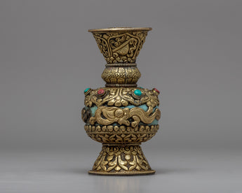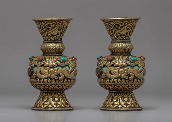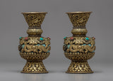 This Flower Vasees is a magnificent work of handcrafted art. It has a brass body with intricate designs that show off the artisan's skill. The gemstones are embedded on the surface of the vase, giving the set a touch of elegance and luxury. The designs are meticulously crafted, resulting in a beautiful texture that draws the eye. The set includes several vases, each with its own design and size, making it ideal for arranging flowers of various sizes and shapes. This Flower Vase set is ideal for adding a touch of elegance and beauty to your home decor or as a gift for a loved one.