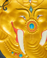 Ganesh Head Wooden Thangka | Wall Hanging Art