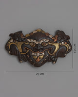 A painstaking process is involved in creating this Garuda face, combining the timeless strength of iron with the soft sheen of silver, the richness of brass, and the warmth of copper. This exquisitely crafted combination of metals beautifully captures the minute details of Garuda's ferocious yet sage face. Bring a bit of ancient mythology into your home with exquisite craftsmanship that is reminiscent of centuries-old Tibetan artistic tradition.