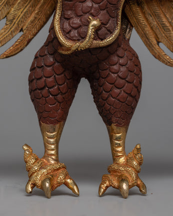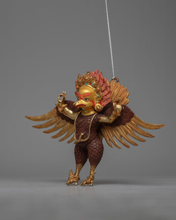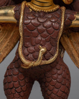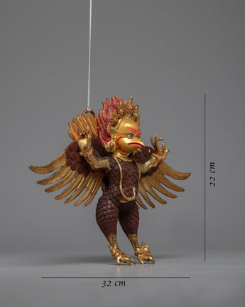 Admire the breathtaking beauty of our Garuda Wall Hanging, a heavenly work of art meticulously crafted on a radiant copper body and lavishly embellished with the shimmering brilliance of 24k gold plating. Measuring a magnificent 22cm in height. Feel the electrifying energy of the mythical Garuda bird, which soars through space and is revered in Buddhist and Hindu legend, with every look.