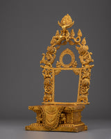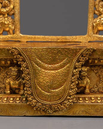 In Buddhist tradition, thrones symbolize the seat of wisdom and enlightened presence. This gold-plated copper throne, adorned with Garuda, embodies victory over negativity and offers protection from harmful influences. As a powerful spiritual centerpiece, it enhances any shrine or sacred space by inviting strength, clarity, and divine guardianship. Crafted with meticulous detail, this throne not only honors sacred deities but also empowers your spiritual environment, making it an essential addition for those seeking a more profound connection and sacred protection.
