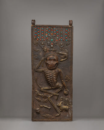 The Citipati are regarded as powerful protectors and reminders of the limited essence of existence. This wall hanging captures their protecting and transformational aura, making it an ideal addition to meditation rooms, home altars, or spiritual decor. At 2.61 kg, it is powerful and beautifully handmade, perfectly integrating tradition, religion, and artistry.