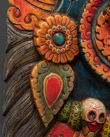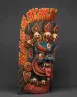 This mask, expertly carved from wood and hand-painted with vibrant acrylic colors, is more than just a spiritual protector; it is also a deeply cultural work of art. The intricate craftsmanship reflects traditional Tibetan artistry passed down through the generations. It's a substantial wall hanging, weighing 8.18 kg, ideal for use in meditation rooms, home temples, yoga studios, or spiritual sanctuaries. The snake crown, fierce gaze, and flaming aura combine to create a captivating focal point that commands both reverence and attention.