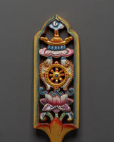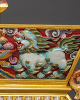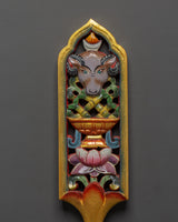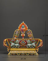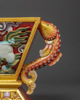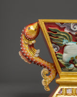 Bring the essence of Tibetan spirituality into your house with this hand-painted wooden Buddhist Box. This meticulously constructed ceremonial artifact is used in Buddhist ceremonies and as a holy gift. This highly designed Chemar box, 47cm high by 56cm wide, and weighing 2.07kg, is usually used during Losar (Tibetan New Year) and other spiritual celebrations. The vivid acrylic paint on wood depicts the intricate symbolism and craftsmanship of Tibetan culture, making it both a utilitarian item for ceremonies and a lovely ornamental piece.