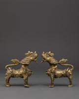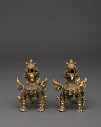 Tibetan Handcrafted Brass Lion Set | Traditional Buddhist Decor