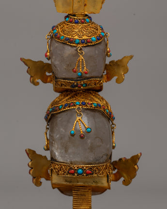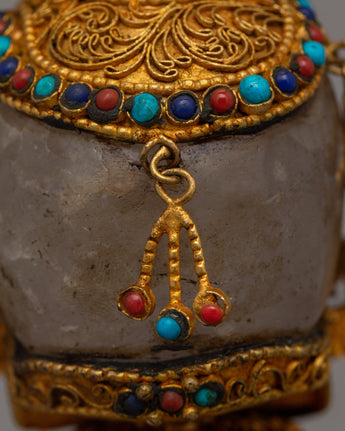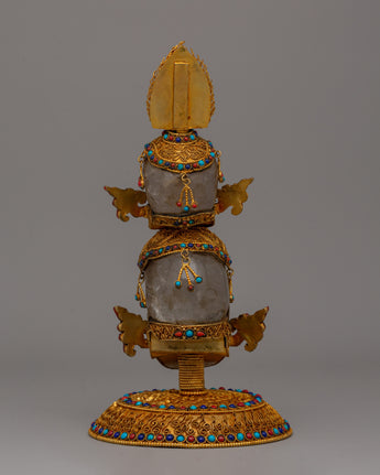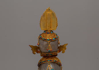 Every aspect of this magnificent item is delicately made, with materials such as crystals and semi-precious stones like coral and turquoise. The creative use of these bright stones increases the statue's spiritual and visual appeal, signifying enlightenment and protection. Whether you practice Buddhism or enjoy religious art, this statue adds a tranquil yet powerful vibe to your home.