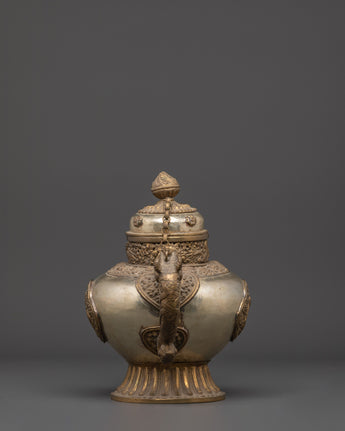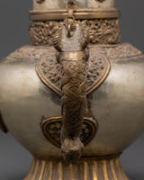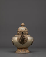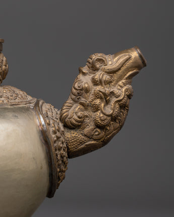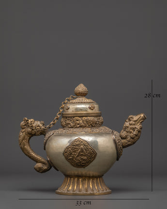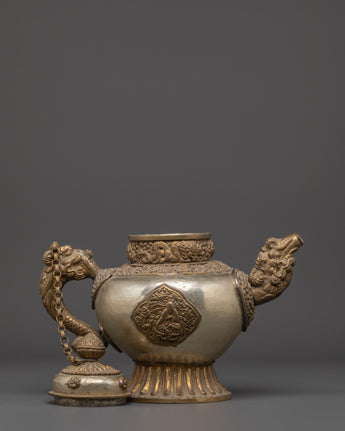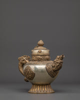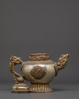 Handcrafted Buddhist Tea Pot | Traditional White Metal Pot with Dragon Handles