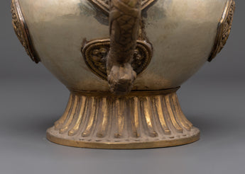 This beautiful, handcrafted Buddhist teapot truly reflects the artistry and spirit behind its design. Standing at 28 cm tall and 33 cm wide, it makes a wonderful centerpiece for meditation or tea rituals, inviting a sense of calm and focus. Crafted from white metal, the detailed patterns are a proud showcase of ancient craftsmanship passed down through generations. The dragon-shaped handles add a special touch, symbolizing strength and protection in Buddhist culture.