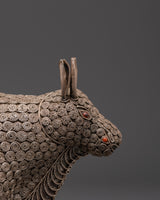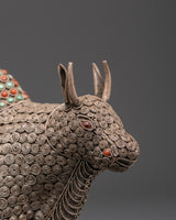 The bull has always been associated with force, resilience, and vigor, and this Handcrafted Bull Sculpture embodies those attributes. The spiral coin designs and gemstone inlays combine to create a one-of-a-kind design that blends creative flair with deep meaning. This sculpture adds a thoughtful touch to any environment and is ideal for collectors or anybody who values good craftsmanship.
