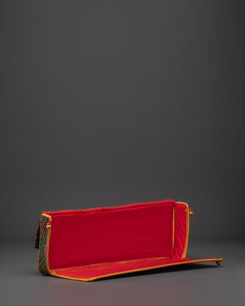 This silk fabric book cover is ideal for journals, novels, or sacred texts, providing both elegance and protection for your books. The vibrant red lining complements the multicolored exterior, making this an eye-catching addition for any book lover. This Handcrafted Ethnic Fabric Book Cover is an ideal present for anyone who values distinctive cultural artistry and elegant style in their reading accessories.