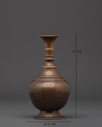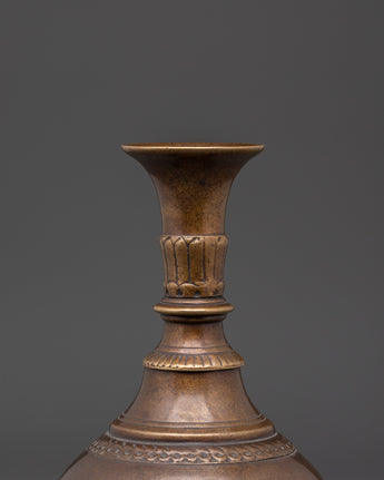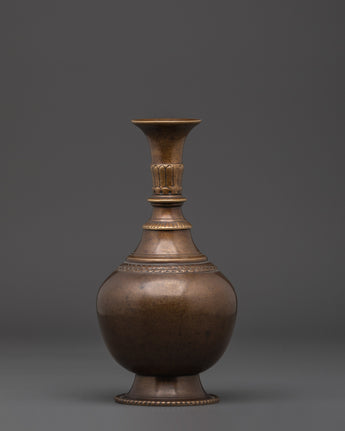 Each vase is expertly created by talented artisans, with complex patterns reflecting cultural heritage and spiritual regard. The etched bands and elevated designs are not only eye-catching but also symbolic of unity, balance, and offering. Every detail has been meticulously engraved, resulting in a sculpture that acts as both a religious object and a profound work of art. These vases are perfect for holding flowers, ritual waters, or as ceremonial placeholders on shrines and puja tables.