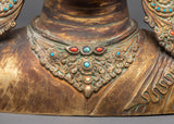 Invite serenity into your space with this Handcrafted Gold Plated Buddha Head, crafted from oxidized copper and detailed with vibrant artificial coral stones. This magnificent sculpture captures the calm expression of Buddha, radiating peaceful energy through every element from the delicately engraved facial features to the ornate crown and earrings. Each part of the statue reflects the spiritual richness of Himalayan artistry.