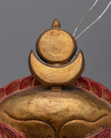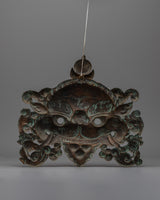The Kritimukha Mask is a traditional protector venerated in both Hindu and Buddhist cultures. It represents protection and guards sacred sites. This copper and electro-gold-plated mask demonstrates the meticulous artistry linked with religious ceremonies and spiritual symbols. With its furious attitude and complex form, the Kritimukha is frequently utilized to ward off negative energies and protect against harmful effects, making it a vital component in temples, altars, and spiritual spaces.