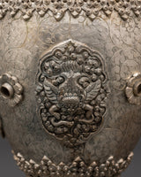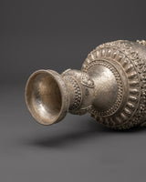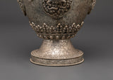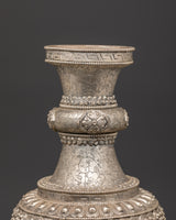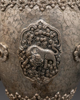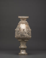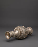 Enhance your sacred area with this handcrafted silver flower vase Pair, which features traditional Tibetan artistry and symbolic lion patterns. These artistically sculpted vases symbolize strength, protection, and spiritual power, making them suitable for Buddhist altars, meditation rooms, and ceremonial shrines. The piece radiates cultural depth, linking your surroundings with Himalayan tradition. Whether used to carry gifts, ceremonial flowers, or simply as decorative spiritual vessels, their delicate and classic style brings serenity to any environment. The intricate lion carvings symbolize guardianship and boldness, bringing calm and pleasant energy into your house or temple.