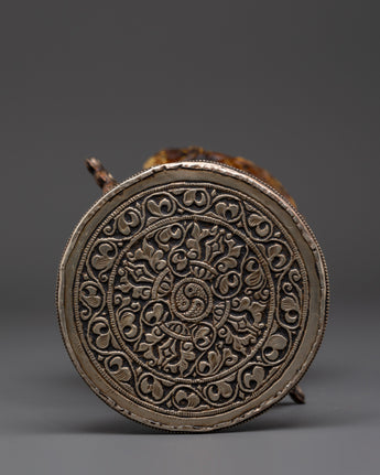 The Handcrafted Spiritual Seal Stamp is a wonderful spiritual instrument that can be used for meditation, blessings, or holy rites. This seal is made of white metal and fiber, with exquisite motifs that reflect divine emblems of protection, wisdom, and enlightenment. Each symbol has profound spiritual significance, making it ideal for imprinting sacred pictures on donations, prayer materials, or altar artifacts. The design's perfection enables practitioners to focus their spiritual objectives and leave profound, sacred imprints during rituals.