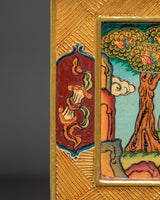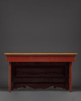 Enhance your living environment with our Handcrafted Tibetan Folding Table, expertly designed with hidden Buddhist artistry. This lively table serves as both an everyday piece of furniture and a distinctive work of art that enhances the spiritual and cultural depth of any environment. The table, constructed from wood, showcases vibrant colors and intricate artwork that represent Buddhist meaning, with serene themes and spiritual motifs. This table, measuring 36.5 cm in height and 65 cm at the base, is ideal for meditation, prayer, or as a striking decorative feature.