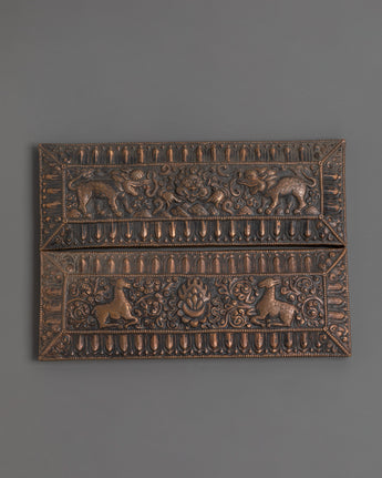 Handcrafted Tibetan Scripture Book Cover | Copper and Wood Buddhist Manuscript Protection