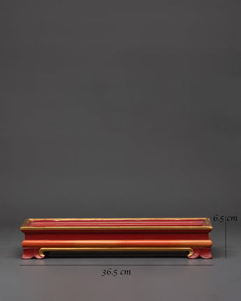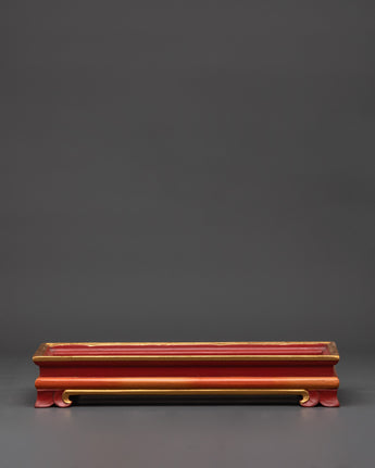 This tray is made of wood and measures 36.5 cm in base length, 6.5 cm in height, and 16.5 cm in width, providing plenty of space for spiritual offerings or significant items. Lightweight yet substantial at 0.44 kg, it is ideal for home decor or as a thoughtful gift for anyone interested in Tibetan art and spirituality. Whether used for daily meditation or as a decorative piece, this Tibetan wooden tray adds a meaningful touch to your space.