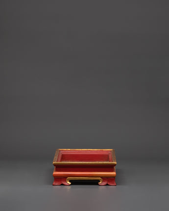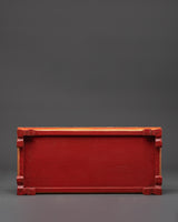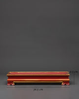 Enhance your sacred space with this Handcrafted Tibetan Wooden Tray, which includes a beautifully hand-painted Dharma Wheel design in red and gold. This tray is a stunning example of Tibetan craftsmanship, perfect for use on your Buddhist altar or during meditation. The vibrant acrylic colors and intricate details not only add elegance to your space but also convey deep spiritual symbolism, making it a must-have for anyone practicing Buddhism or seeking to connect with Tibetan culture.